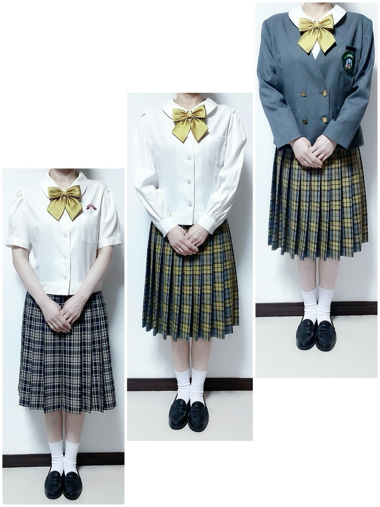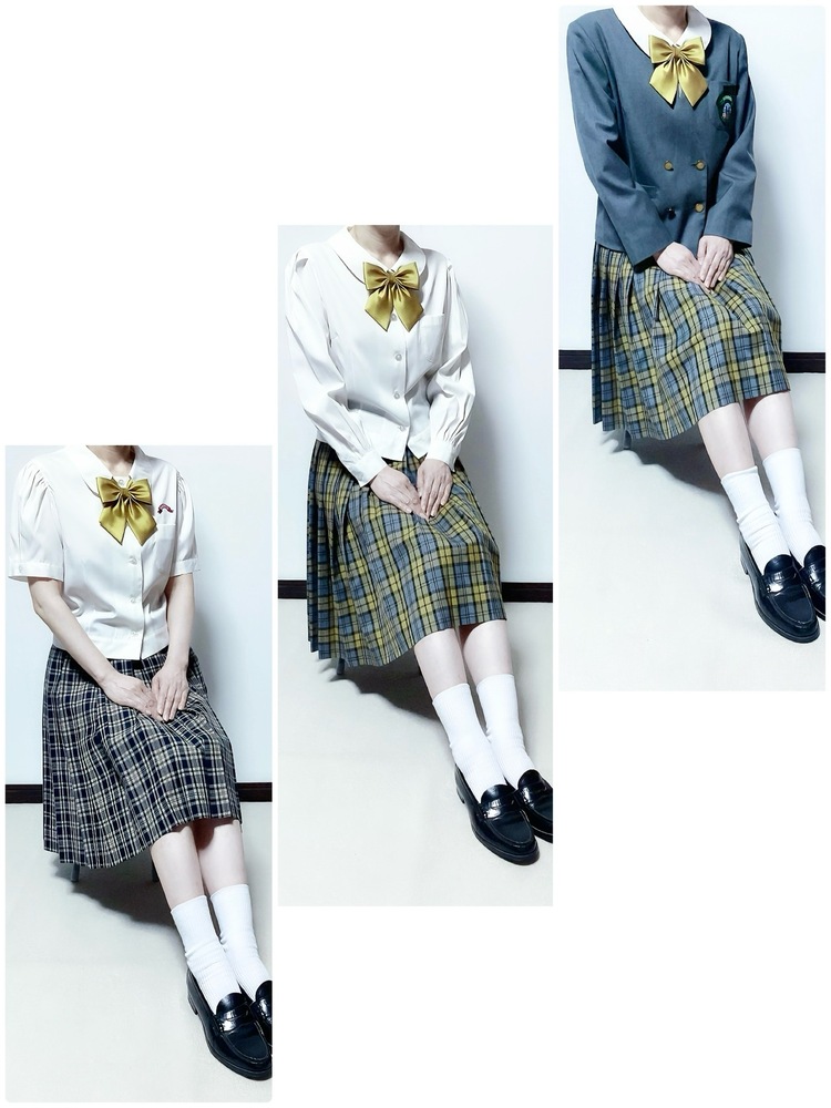 ご覧くださいまして本当に有難うございます。大分市立原川中学校夏(特大)中間冬服フルセット全指定人気のゴールドリボンとイエローチェックスカートを出品致しました。全てクリーニング済です。 ※モデルさんの身長163センチの方ですのでご参考くださいませ。 【商品説明】イートンブレザー(肩幅42丈57胸囲102袖56毛50ポリ50) 冬ブラウス(肩幅41丈52胸囲100袖56タグ消え) 冬スカート(W68丈65毛60ポリ40) 夏ブラウス(肩幅42丈52胸囲102ポリ80綿20) 夏スカート(W84丈61タグとれ) 指定リボン 一本 【商品状態】大分市内にございます市立原川中学校の夏(特大)、中間、冬服セットの商品ですがイエローチェック基調のスカートとゴールドリボンが大人気の制服となっておりますのでご覧くださいませ。尚夏服は特大サイズとなっておりまして絞った形で撮影しておりますのでご理解くださいませ。特筆的なダメージもなく状態良好ですがあくまでも中古の商品ですのでノークレームノーキャンセルノーリターンを遵守の上宜しくお願い申し上げます。 ご入札の前に必ずお読みくださいませ。 ご落札後24時間以内にご連絡可能な方と3日以内にご入金可能な方のみに限らせていただきますのでどうぞご理解くださいませ。又落札後のキャンセルは受け付けておりませんのでご理解くださいませ。 配送は主にゆうパックでの発送となりますがその他の配送も受け付けていますのでその際はご遠慮なくお申し付けくださいませ。又局留め、同梱発送も受け付けておりますのでご連絡くださいませ。 【お振込先】ゆうちょ銀行 宮崎銀行 ※スムーズなお取引で楽しいオークションが出来ますこと願っております。