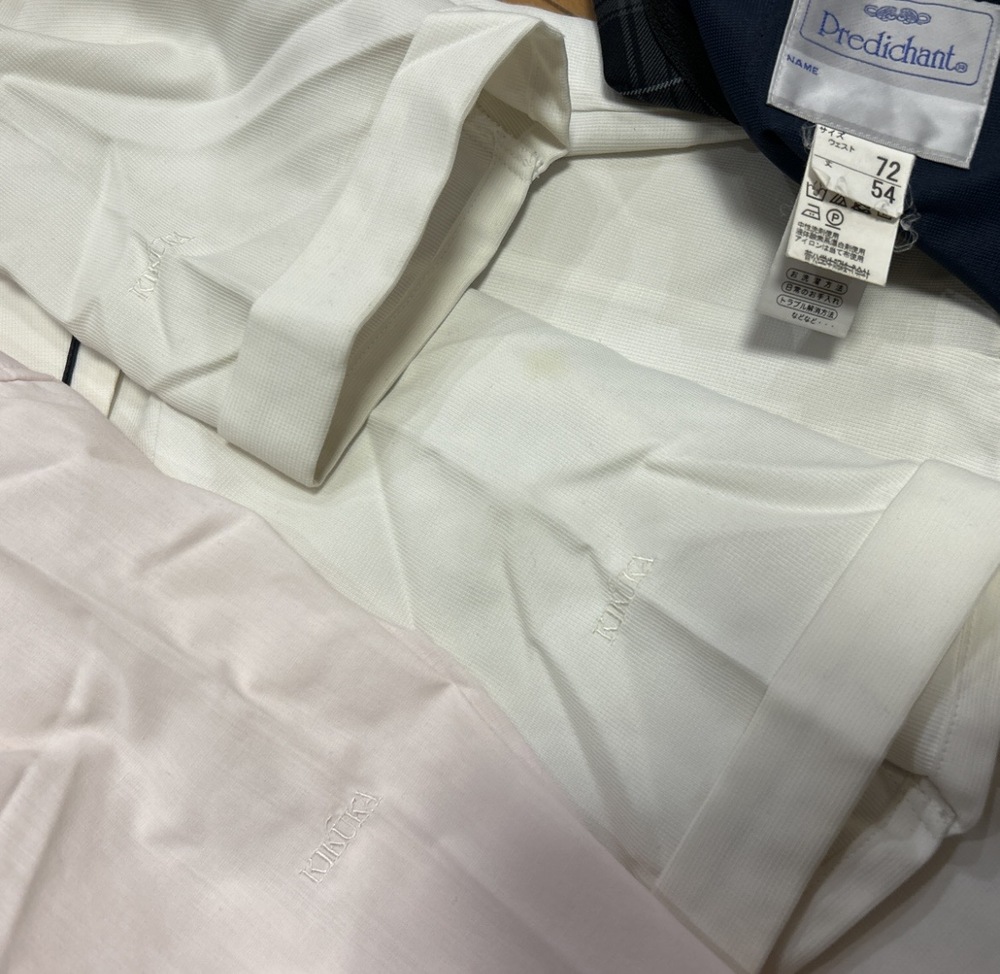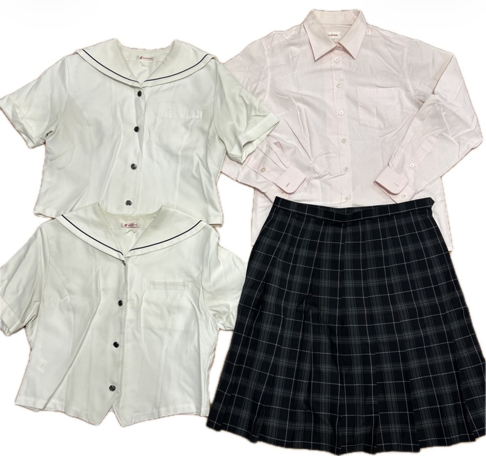 菊華高校の制服です。 長袖ブラウス Lサイズ相当 冬スカート W72.L54 半袖セーラー襟ブラウス Lサイズ相当 身幅50.肩幅42.着丈45 中古品ですので神経質な方ご遠慮ください。汚れあります。 |