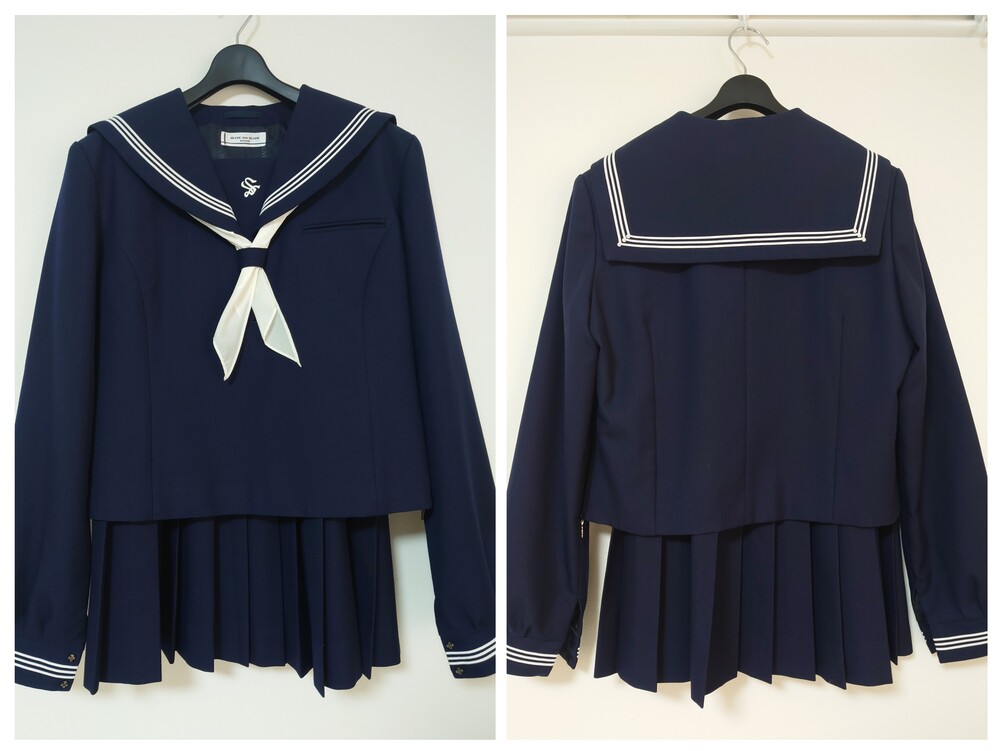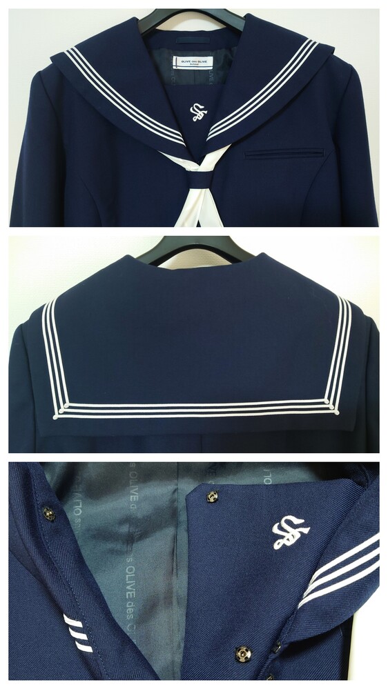 神奈川県大井町立湘光中学校の冬セーラー服の出品です。 商品内容(3点) @冬セーラー服 Aスカーフ B冬プリーツスカート サイズ・状態 @冬セーラー服 表地毛50 ポリエステル50 裏地ポリエステル 表記サイズ 180A 身長180 胸囲91 実寸サイズ(単位cm) 肩幅44 袖丈64 身幅53 着丈51.5 使用感が無く大変綺麗な状態。 トンボ学生服製 OLIVE des OLIVEブランド 裏地にもブランドが入っていて見えない所にも可愛さのある素敵な制服です。 Aスカーフ(白色) ナイロン100 ハネクトーン製 経年による黄ばみ(変色あり) B冬スカート 毛50 ポリエステル50 表記サイズ ウエスト69 丈60 実寸サイズ(単位cm) ウエスト65ー72 ベルト下丈60 お尻の部分にうっすらテカリがありますが、綺麗な状態です。 トンボ学生服製 OLIVE des OLIVEブランド |