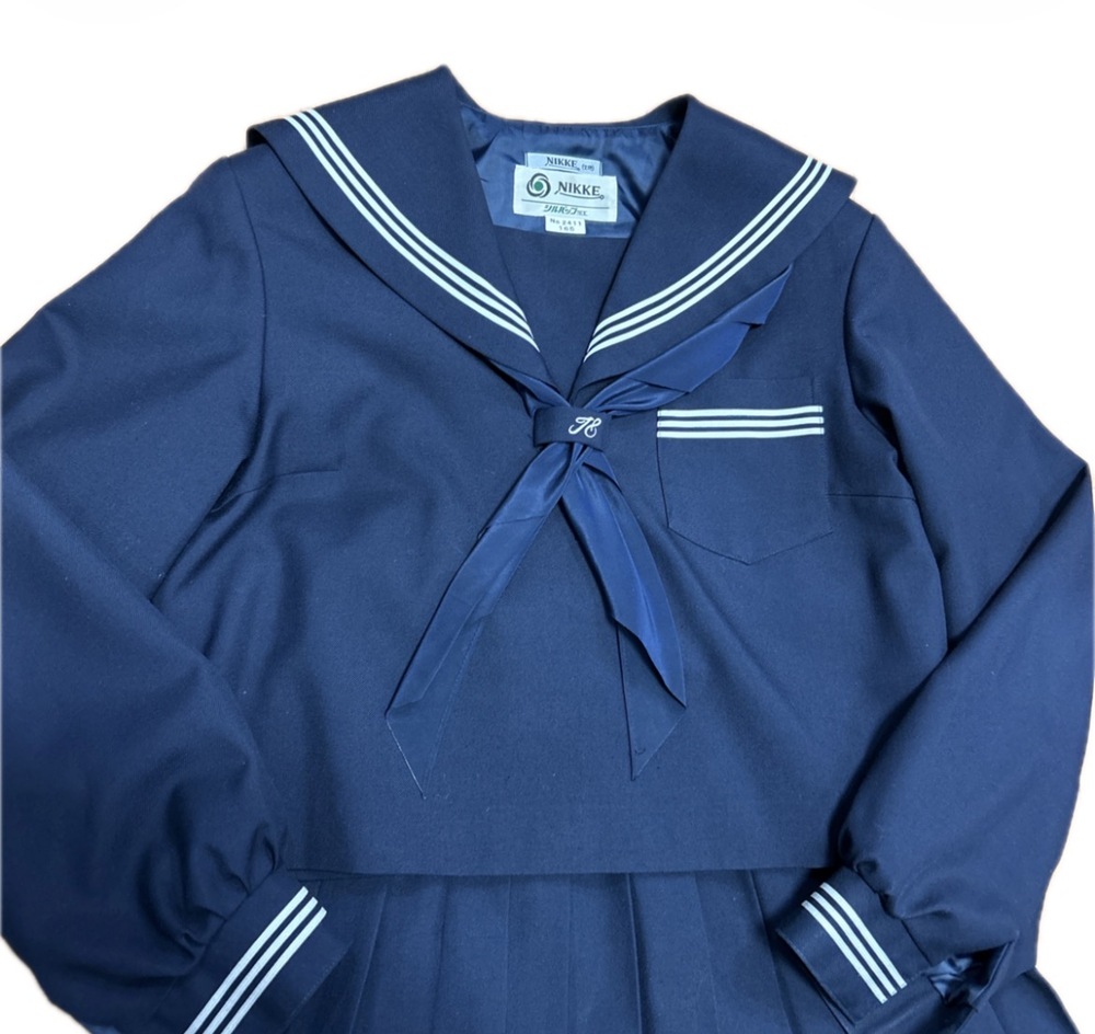 • 三重県 41 三重県八風中学校 制服 スカーフ付き冬セーラー服 上下セット