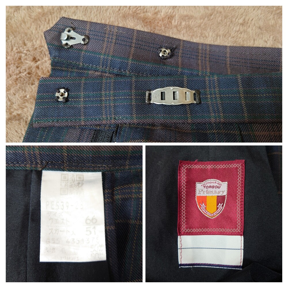 豊島学院高校のスカート2点と、通学リュックの出品です。 商品内容 @冬スカート(ブラウン系チェック柄) A夏スカート(グレー系チェック柄) B通学リュック 以上3点 サイズ・状態 @冬スカート 毛50 ポリエステル50 タグ記載サイズ ウエスト66 スカート丈51 実寸サイズ(単位cm) ウエスト65-67(1cm刻みで3段階調節可) スカート丈51 トンボ製 A夏スカート ポリエステル58 毛32 合成繊維(エクス)18 タグ記載サイズ ウエスト66 スカート丈51 実寸サイズ(単位cm) ウエスト65-67(1cm刻みで3段階調節可) スカート丈51 トンボ製 B通学リュック 訳ありのため、1年生の冬休み前までの使用で、大変に綺麗な状態です。 |