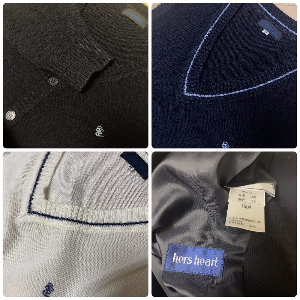 ご訪問頂き誠に有難う御座います。 ご入札前にお手数ですが必ず プロフィールをご一読下さいますよう 何卒お願いを申し上げます。 ご閲覧頂いていない場合のクレームは 受け付けておりませんので 何卒ご了承下さいませ。 以下発送品となります 中央大学附属横浜高校の制服は、落ち着いたネイビーカラーを基調とした上品で洗練されたブレザースタイルが特徴です。男女ともにブレザーを基本とし、白シャツにリボンやネクタイを合わせることで、フォーマルで知的な印象を演出します。 女子はチェック柄スカートを中心に、セーター・カーディガン・ベストなどのバリエーションがあり、季節や好みに応じた着こなしが可能。夏はポロシャツや軽やかなスカートスタイルも選べ、快適さとデザイン性を両立しています。 単位(cm) |