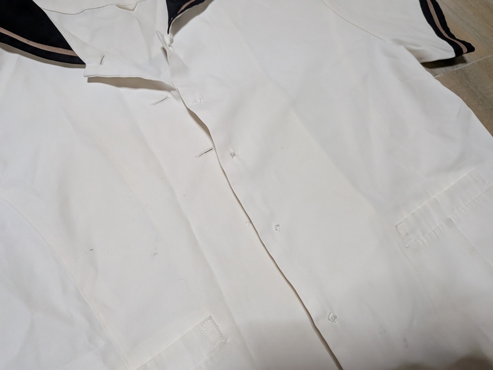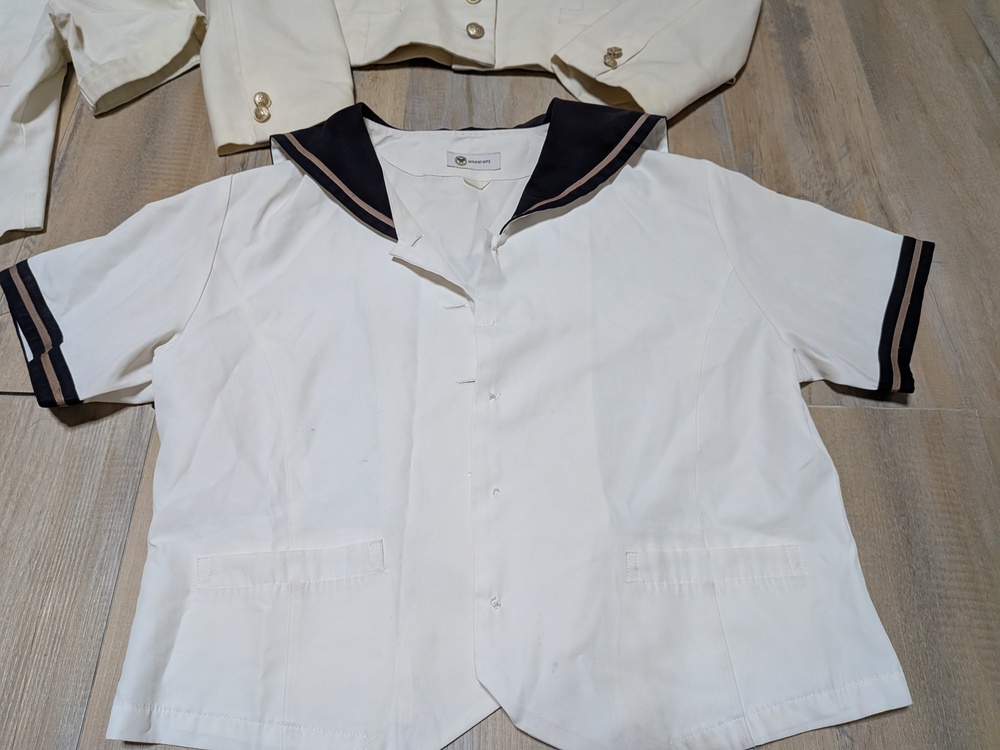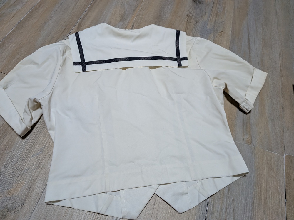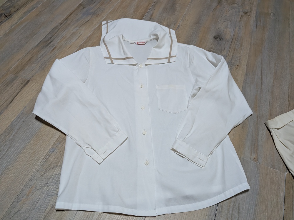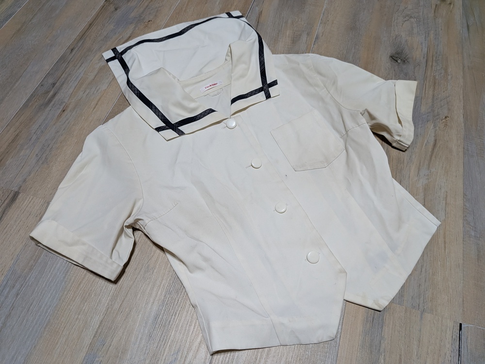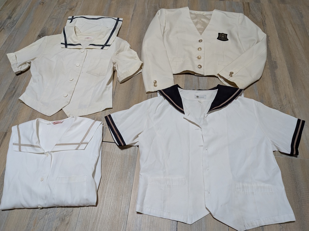 半袖セーラーブラウス 丈48 肩幅41 脇下身幅48 全体的に黄ばみあり 半袖セーラーブラウス 丈46 肩幅40 ボタン無し 色褪せあり 長袖セーラーブラウス 丈81 肩幅39 脇下身幅47 ジャケット 160 多少の使用感あり |