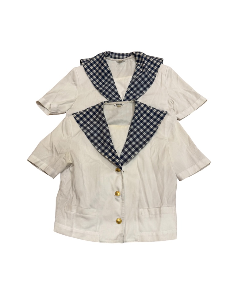 新規の方の入札で落札後、御連絡が一切ないケースが非常に多いので新規の方は入札しないでください。 新規の方、ご入札の際、必ず御連絡下さい。 それ以外の新規の方の入札は削除させて頂きます。 最近、御連絡無い方が多いので御理解の程よろしくお願い申し上げます。 画像で判断が難しい場合は質問にて御連絡頂きますと幸いです。 スカートは総丈のサイズを記載しております。 また御返品等は承れません。 同梱は可能です。 また郵便局留めにも対応させて頂いております。 ★岡山県私立就実中学校のセーラーブラウス2点です。 ★ブランド HANAE MORI ★状態 一枚、後ろに小さなシミが御座いますが全体的に綺麗なコンディションです。 ★サイズ ・半袖セーラーブラウス 2点ともに 身幅 約 47p 着丈 約 49p 肩幅 約 40p 袖丈 約 23p |
