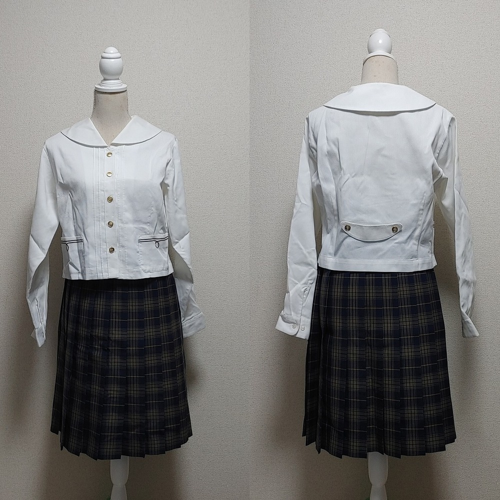 ご覧いただきありがとうございます。 写真掲載商品のご提供となります。 以下商品内容となります。 出品内容 大分県 大分東明高等学校 夏制服セット @セーラーブラウス(半袖) サイズ:170A 肩幅:41cm 身幅:48cm 着丈:46cm 袖丈:22cm Aセーラーブラウス(長袖) サイズ:175A 肩幅:43cm 身幅:51cm 着丈:47cm 袖丈:58cm Bベスト サイズ:175A 肩幅:39cm 身幅:47cm 着丈:48cm Cスカート ウエスト:69cm 丈:56cm(タグは59cm) ※アジャスター付き D指定靴下 未使用品 以上、5点の出品です。 全て指定品になります。 jackalの出品商品 https://seifuku-ichiba.com/my_auction.cgi?acc=selling ※サイズの測定は、平置きにて実施しております。手計測のため、若干の誤差はご容赦願います。 ※個人保管のため、たたみ皺等ありますのでご理解いただきますようお願いいたします。 商品の発送発送につきましては、原則土日での発送、ヤマト便での対応となります。ゆうパックでの発送も対応可能ですが、近隣に営業所がないため発送までのお時間をいただきます。お急ぎの場合や配送方法の指定がある場合は事前にお伝えください。 落札後は24時間以内のご連絡、3日以内の入金をお願いいたします。尚、落札後はNC・NRでお願いいたします。その他、不明点につきましてはご質問欄よりお問い合わせいただければ可能な限りお答えいたします。但し、当該オークションの終了間際(前日〜終了まで)にお問い合わせの際は、タイミング的に回答が難しい場合もありますので悪しからずご理解願います。お早めのお問い合わせをお願いいたします。 |