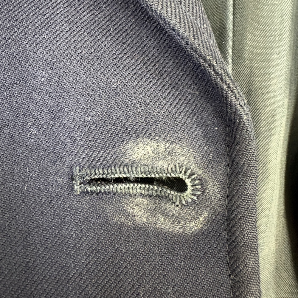 ボタン、襟元に汚れ有ります。