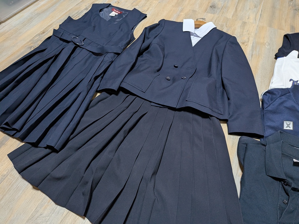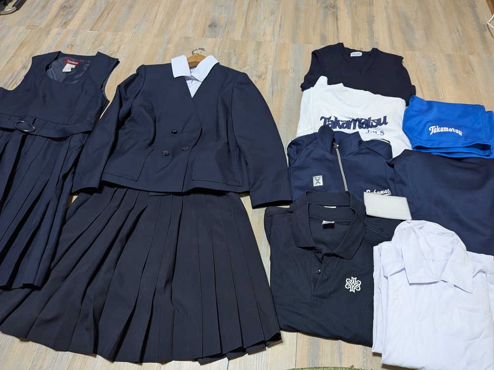 トンボ製 ジャケット 165A 多少の使用感あり 長袖ブラウスM 4枚 ジャンパースカート 165 ニットベスト 傷みあり スカート w63 丈54 半袖ポロシャツS 2枚 体操服 ジャージ 上衣 S 下衣 S 半袖体操服 M やや使用感あり ハーフパンツ L |