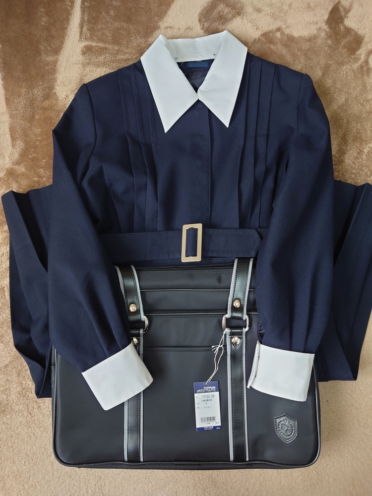 山脇学園の第1制服(ワンピース)とスクールバッグ(新品タグ付き)の出品です。 商品内容 @山脇学園第1制服(ベルト・カフス付属) A指定スクールバッグ(新品未使用品・タグ付き・元袋入り) 以上2点 サイズ・状態 @第1制服(ワンピース) ☆タグ表記☆ 表地 毛70 ポリエステル30 裏地 ポリエステル100 サイズ L60 ☆実寸サイズ☆ 襟周り44(内側1周) 肩幅42 身幅45 ウエスト82(内側1周) 総丈98 スカート丈60(腰から下) 現行モデルTOMBOW製(VARSITYMATE) 使用感無く美品です。 L60サイズは大きめの希少なサイズです。 ベルト・カフス全て揃っています。 Aスクールバッグ 新品・未使用品 元袋入り 素材 ナイロン 人気の山脇学園の第1制服です。この機会に是非ご検討ください。 |