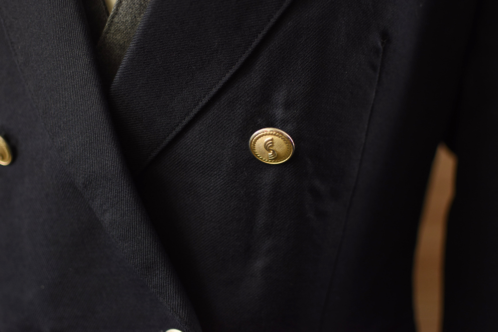 状態は実際に使用されていたものですのでb冬ベストのグレー側のボタンが一つありません。ブラウスに薄い黄ばみ、着用感があります。