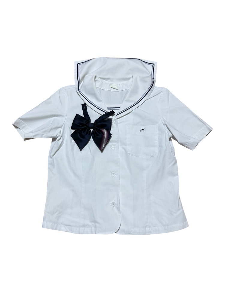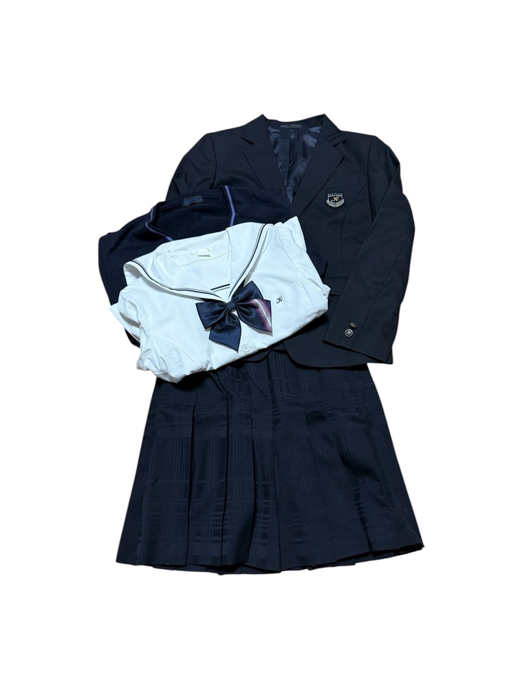 新規の方の入札で落札後、御連絡が一切ないケースが非常に多いので新規の方は入札しないでください。 新規の方、ご入札の際、必ず御連絡下さい。 それ以外の新規の方の入札は削除させて頂きます。 最近、御連絡無い方が多いので御理解の程よろしくお願い申し上げます。 画像で判断が難しい場合は質問にて御連絡頂きますと幸いです。 スカートは総丈のサイズを記載しております。 また御返品等は承れません。 同梱は可能です。 また郵便局留めにも対応させて頂いております。 ★岡山県立倉敷高等学校の制服です。 ブレザー、ニット、半袖セーラーブラウス、リボン、スカートの合計5点です。 ★ブランド hers heart ★状態 全体的にかなり綺麗なコンディションです。 ★サイズ ・ジャケット 160A 身幅 約 47p 着丈 約 60p 肩幅 約 40p 袖丈 約 57p ・半袖セーラーブラウス 155A 身幅 約 47p 着丈 約 49p 肩幅 約 37p 袖丈 約 22p ・ニット Mサイズ 身幅 約 51p 着丈 約 56p 肩幅 約 42p 袖丈 約 57p ・スカート ウエスト 約 66p 総丈 約 53p |