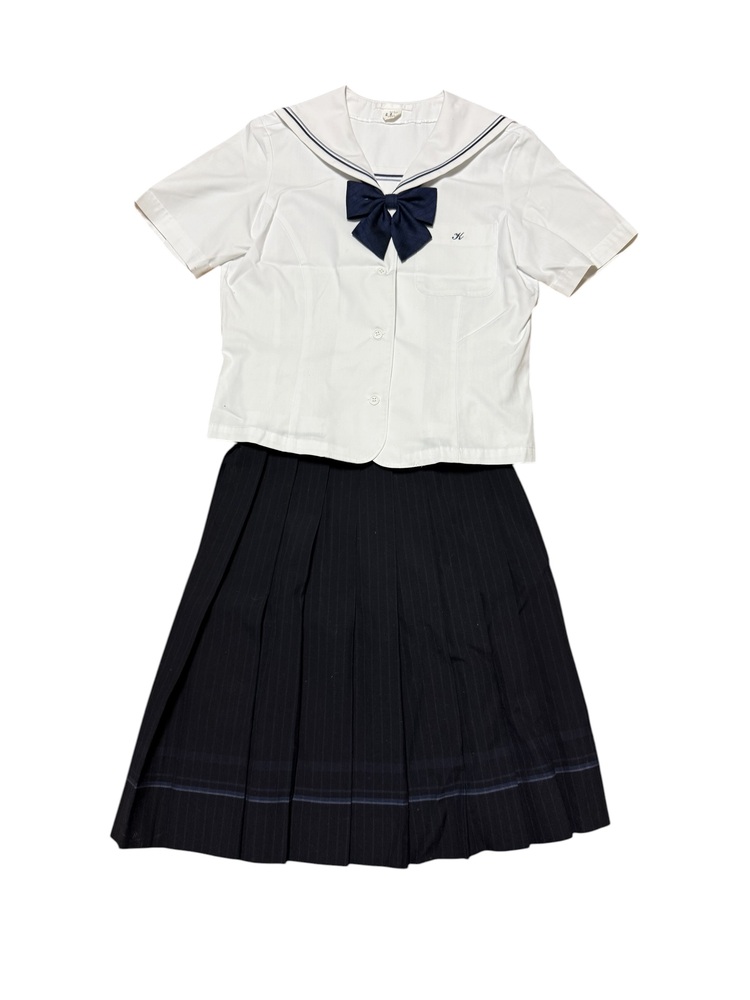 新規の方の入札で落札後、御連絡が一切ないケースが非常に多いので新規の方は入札しないでください。 新規の方、ご入札の際、必ず御連絡下さい。 それ以外の新規の方の入札は削除させて頂きます。 最近、御連絡無い方が多いので御理解の程よろしくお願い申し上げます。 画像で判断が難しい場合は質問にて御連絡頂きますと幸いです。 スカートは総丈のサイズを記載しております。 また御返品等は承れません。 同梱は可能です。 また郵便局留めにも対応させて頂いております。 ★岡山県立倉敷高等学校の制服と体操服です。 半袖セーラーブラウス、リボン、スカート、体操服6点、合計9点です。 ★状態 全体的にかなり綺麗なコンディションです。 ★サイズ ・半袖セーラーブラウス 155A 身幅 約 47p 着丈 約 49p 肩幅 約 37p 袖丈 約 22p ・スカート ウエスト 約 66p 総丈 約 53p ・体操服 ジャージ Sサイズ 長ズボン SSサイズ Tシャツ 2点 Mサイズ ショートパンツ 2点 M |