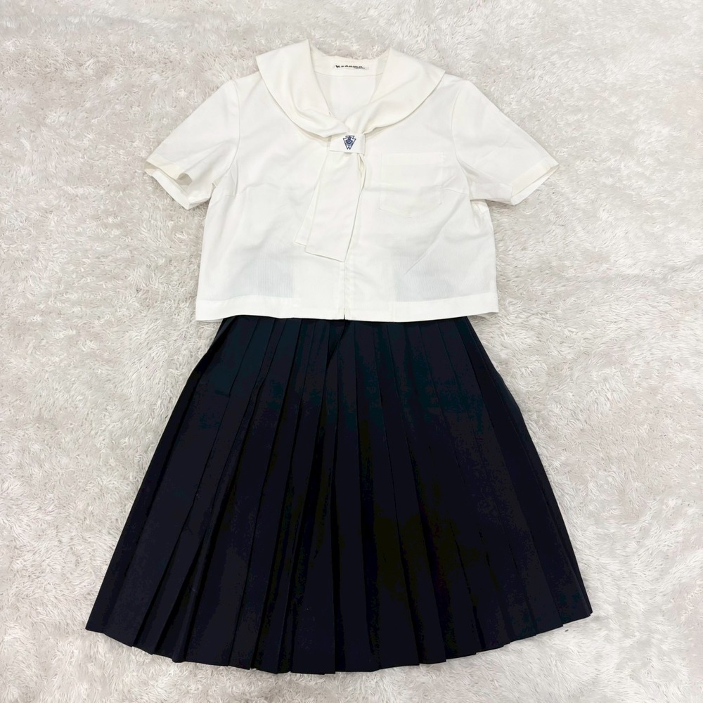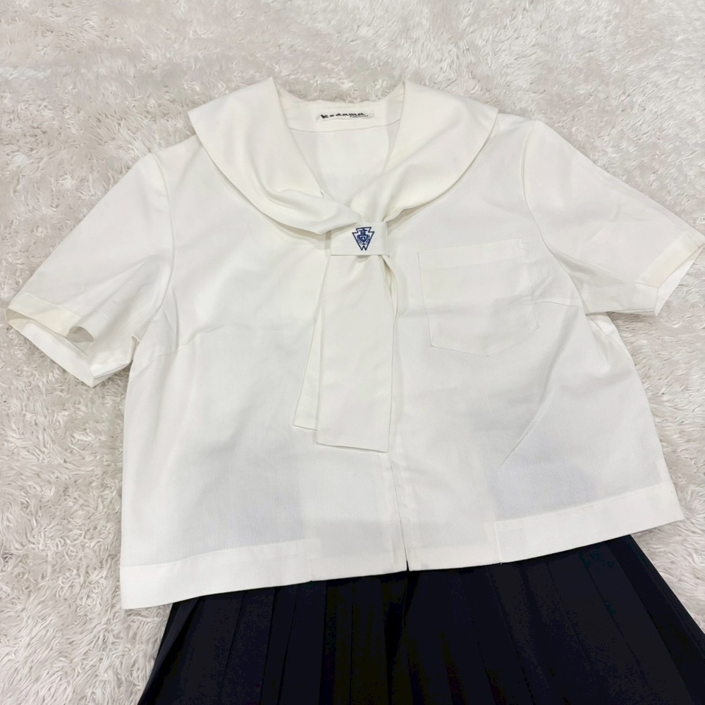 【商品説明】 広島県立福山葦陽高等学校(福山葦陽高校)女子制服 夏服セーラー服セットです。 清潔感あるホワイトカラーの上衣に、丸みのある襟デザインと胸元のリボンタイ、落ち着いたネイビープリーツスカートを合わせた上品で知的な印象の一着です。校章入りタイ留めも付属しており、伝統校らしい雰囲気があります。 制服コレクション、資料用、イベント衣装、撮影用、ディスプレイ用途にもおすすめです。 【セット内容】 ・夏服セーラー上衣 ・リボンタイ ・タイ留め(校章入り) ・プリーツスカート 【学校情報】 広島県立福山葦陽高等学校は広島県福山市に所在する伝統ある県立高校です。地域に根ざした進学校として知られ、多くの卒業生を輩出しています。 【サイズ表記】 上衣:9 スカート:60-51 【カラー】 上衣:ホワイト スカート:ネイビー 【状態】 中古保管品 ・全体的にシワあり ・軽微な薄汚れ、使用感あり ・スカート内側にネームタグあり ・目立つ破れや大きなダメージは見受けられません 詳細は画像をご確認ください。 【特徴】 ・白セーラー夏服デザイン ・校章入りタイ留め付き ・濃紺プリーツスカート ・爽やかで人気の高い王道配色 現品限りとなります。 |