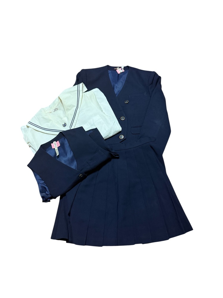 新規の方の入札で落札後、御連絡が一切ないケースが非常に多いので新規の方は入札しないでください。 新規の方、ご入札の際、必ず御連絡下さい。 それ以外の新規の方の入札は削除させて頂きます。 最近、御連絡無い方が多いので御理解の程よろしくお願い申し上げます。 画像で判断が難しい場合は質問にて御連絡頂きますと幸いです。 スカートは総丈のサイズを記載しております。 また御返品等は承れません。 同梱は可能です。 また郵便局留めにも対応させて頂いております。 ★岡山県私立白陵高校の旧制服です。 ブレザー、ベスト、長袖セーラーブラウス、スカートの合計4点です。 ★ブランド KANSAI SCHOOL FORM ★状態 少しテカリが御座います。 セーラーブラウスにも少し黄ばみが御座いますが 全体的に綺麗なコンディションです。 ★サイズ ・ジャケット Mサイズ 身幅 約 48p 着丈 約 46.5p 肩幅 約 41p 袖丈 約 54p ・長袖セーラーブラウス 身幅 約 49p 着丈 約 46p 肩幅 約 40p 袖丈 約 57p ・ベスト Mサイズ 身幅 約 42p 着丈 約 43p 肩幅 約 33p ・スカート ウエスト 約 63p 総丈 約 45p |