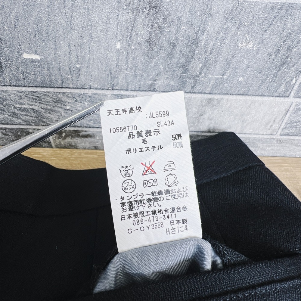 ご覧頂き有難う御座います。 管理番号:260429 【美品】大阪府内3位の進学校 大阪府立 天王寺高校 男子 冬服 ズボン ウエスト76 【冬ズボン】 記載サイズ 76 ウエスト 76cm 総丈 99.5cm 股上 27cm 股下 75.0cm 【状態】 全体的に目立つ様な汚れはなさそうです 内側ネームタグの記名は塗りつぶしています 【注意事項】 ・採寸サイズは凡そのサイズです。メーカーの記載サイズをご参考にして下さい。 ・商品画像には細心の注意を心がけておりますが、見た目は環境により個人差が出てきます。若干の色味の誤差があり得る事をご理解ください。また、縫製などは中古品につき気づかない程度のほつれなどはある場合があります。ご了承ください。 ・小さく折りたたんでのお送りになります。若干の折りシワがある場合があります。 最後までご覧頂き有難う御座いました。 ご不明点やご質問が御座いましたらご連絡ください。 |