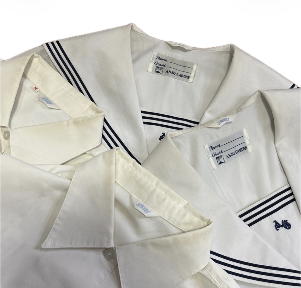 安城学園高校の制服です。 長袖ブラウス 半袖セーラー服 サイズは全てMサイズ。 中古品ですので神経質な方ご遠慮ください。 黄ばみあります。画像にてご確認ください。 |