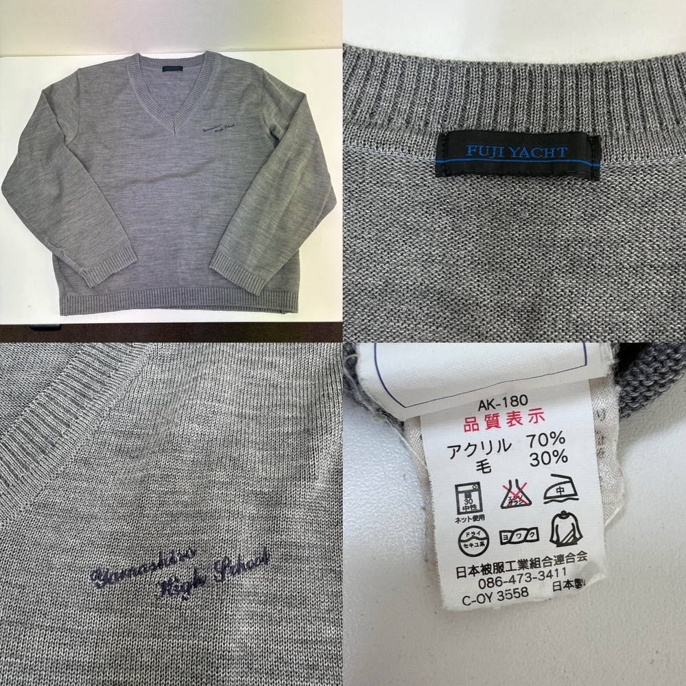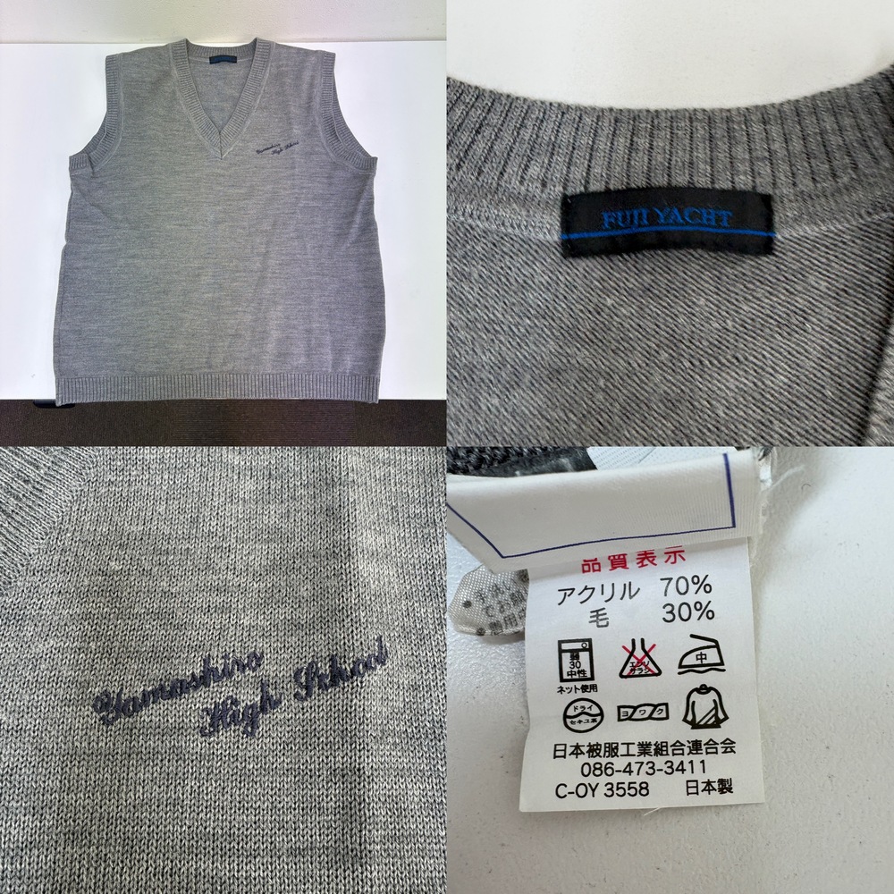 当店の商品をご覧いただきありがとうございます。 ■商品説明■ ・ブレザー サイズ不明 実寸(平置き採寸) 身幅:約50cm 着丈:約62cm 内側に名前刺繍入り ・スカート(夏?) 78-57 ・半袖シャツ LLサイズ ・セーター Lサイズ ・ニットベスト Lサイズ ・ジャージ上衣 Lサイズ 名前刺繍入り ・体操服上衣 Lサイズ 名前刺繍入り ・ハーフパンツ Lサイズ 名前刺繍入り ・ネクタイ 未クリーニング、現状品です。 ■送料■ 全国一律1,200円 ■注意事項■ ・当店の品物はすべて一般のお客様から買取りした品物です。使用期間、使用状況などの詳細な情報についてはお答えできない場合がございます。 ・個人情報などの記入があるお品物については、記載部分をペンで塗りつぶしている場合がございます。 ・出品物、付属品は画像に写っているものが全てです。 ・発送方法は佐川急便のみです。発送方法の変更はできません。営業所留めの対応可能です。 ・落札後一週間以内のご入金をお願いいたします。期限内にご入金が確認できない場合は、落札者様都合によりお取引のキャンセルを行います。 ・同梱発送は同日落札分のみご対応いたします。 |