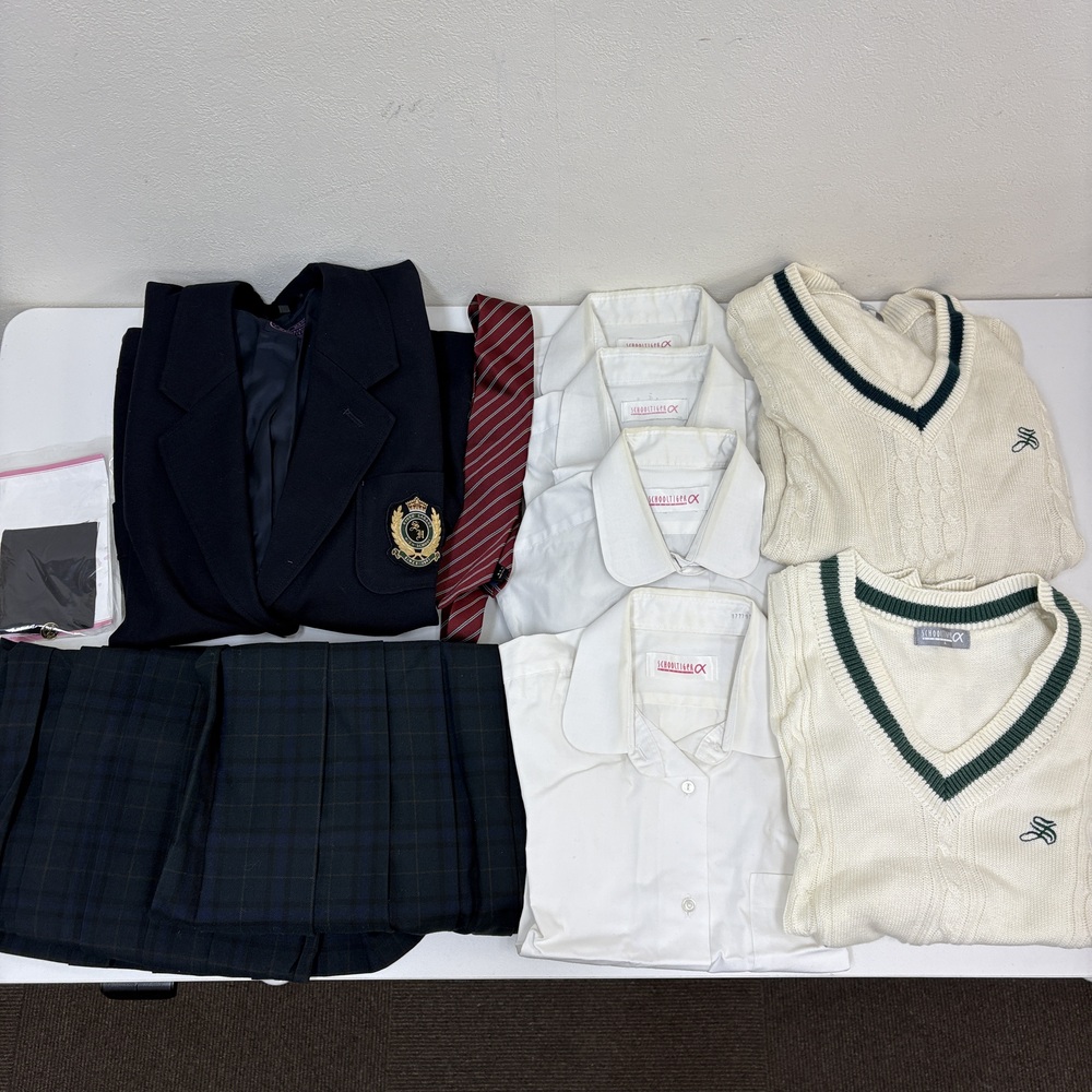 当店の商品をご覧いただきありがとうございます。 ■商品説明■ ・ブレザー Lサイズ ・スカート(冬 夏 各1点) 72-60 ・長袖シャツ3点 Lサイズ シミ汚れあり ・半袖シャツ Lサイズ ・セーター LLサイズ シミ汚れあり 袖口黒ずんでいます ・ニットベスト Lサイズ ・ネクタイ ・替えボタンなど 未クリーニング、現状品です。 ■送料■ 全国一律1,200円 ■注意事項■ ・当店の品物はすべて一般のお客様から買取りした品物です。使用期間、使用状況などの詳細な情報についてはお答えできない場合がございます。 ・個人情報などの記入があるお品物については、記載部分をペンで塗りつぶしている場合がございます。 ・出品物、付属品は画像に写っているものが全てです。 ・発送方法は佐川急便のみです。発送方法の変更はできません。営業所留めの対応可能です。 ・落札後一週間以内のご入金をお願いいたします。期限内にご入金が確認できない場合は、落札者様都合によりお取引のキャンセルを行います。 ・同梱発送は同日落札分のみご対応いたします。 |