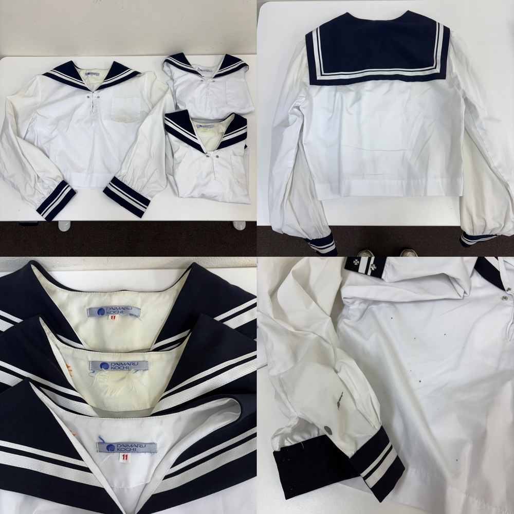 当店の商品をご覧いただきありがとうございます。 ■商品説明■ 全て名前の刺繍入りです。 ・冬セーラー 1点 11号 ・合服セーラー 3点 11号 1点サイズ表記ありませんが、他2点とサイズ感同じです。 汗染みのような黄ばみ、墨汚れ等ございます。 ・夏セーラー 2点 サイズ不明 実寸(平置き採寸) 身幅:約50cm 着丈:約44cm 汗染みのような黄ばみがあります。 ・冬スカート 2点 サイズ不明 実寸(平置き採寸) ウエスト:約35cm スカート丈:約63cm 1点ホック無し ・夏スカート 2点 66-60 1点サイズ表記ありませんが、2点とも同サイズ感です。 1点ホック外れています ・コート 3サイズ 未クリーニング、現状品です。 ■送料■ 全国一律1,200円 ■注意事項■ ・当店の品物はすべて一般のお客様から買取りした品物です。使用期間、使用状況などの詳細な情報についてはお答えできない場合がございます。 ・個人情報などの記入があるお品物については、記載部分をペンで塗りつぶしている場合がございます。 ・出品物、付属品は画像に写っているものが全てです。 ・発送方法は佐川急便のみです。発送方法の変更はできません。営業所留めの対応可能です。 ・落札後一週間以内のご入金をお願いいたします。期限内にご入金が確認できない場合は、落札者様都合によりお取引のキャンセルを行います。 ・同梱発送は同日落札分のみご対応いたします。 |