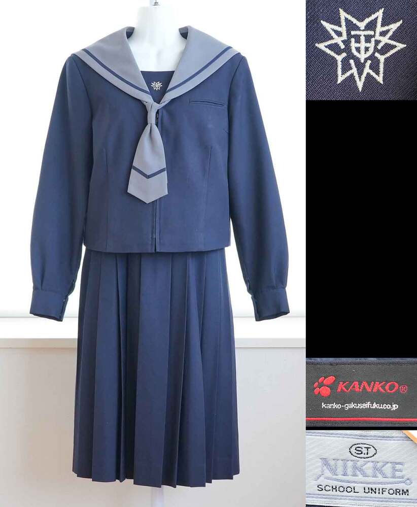 ご覧いただきありがとうございます。江戸川区立清新第一中学校の女子制服3点セットを出品いたします。 ※スマホからは「Read More」を押し全文をご確認ください。 制服はセーラー服! グレーの襟にグレーのタイ。胸当てには校章が刺繍され襟とタイにはそれぞれ1本のラインが入ります。冬服スカートはジャンパースカート! 夏服は腰履きスカートにブラウスを着る形です。 ◇出品内容◇ 1.冬服セーラー服 サイズ170A 1本ライン(テープ) 前ファスナー 肩幅42cm 着丈49cm 袖丈59cm 表地:毛50% ポリ50% 裏地:ポリ 2.冬服ジャンパースカート 前箱ひだ24本 スライド式 胸囲92cm ウェスト76cm 丈99cm 表地:毛50% ポリ50% 裏地なし 3.タイ 以上3点。制服ブランドは「KANKO」です。総合評価(生地の状態)は10点満点で7点です。アイテム毎に特記事項は記載していますので御覧ください(未記載の場合は問題なしの良品)。 卒業生様から丁寧な買い取りをおこない、検品・クリーニングの上出品させていただきました。当店での撮影以外、卒業生以外は一切経由していない純粋な制服です。ご入札を心からお待ちしております。 <ご注意> ・写真に写っているものが全てです。内容は写真が優先です。不明点はコメントから質問ください。 ・終了当日までに入札がない場合は出品を取り消すことがあります。購入希望は早めにご入札ください。 ・発送後に伝票番号をお送りします。荷物追跡、郵便局留め可能です。 ・私の新規出品をメールでお知らせします⇒登録する |