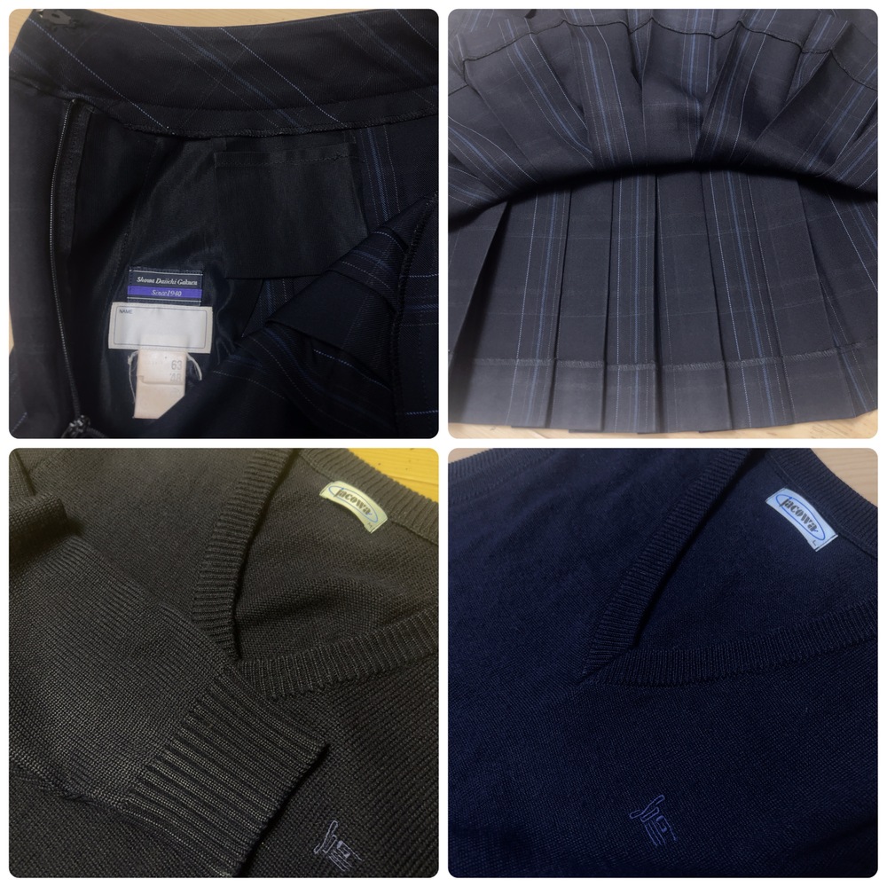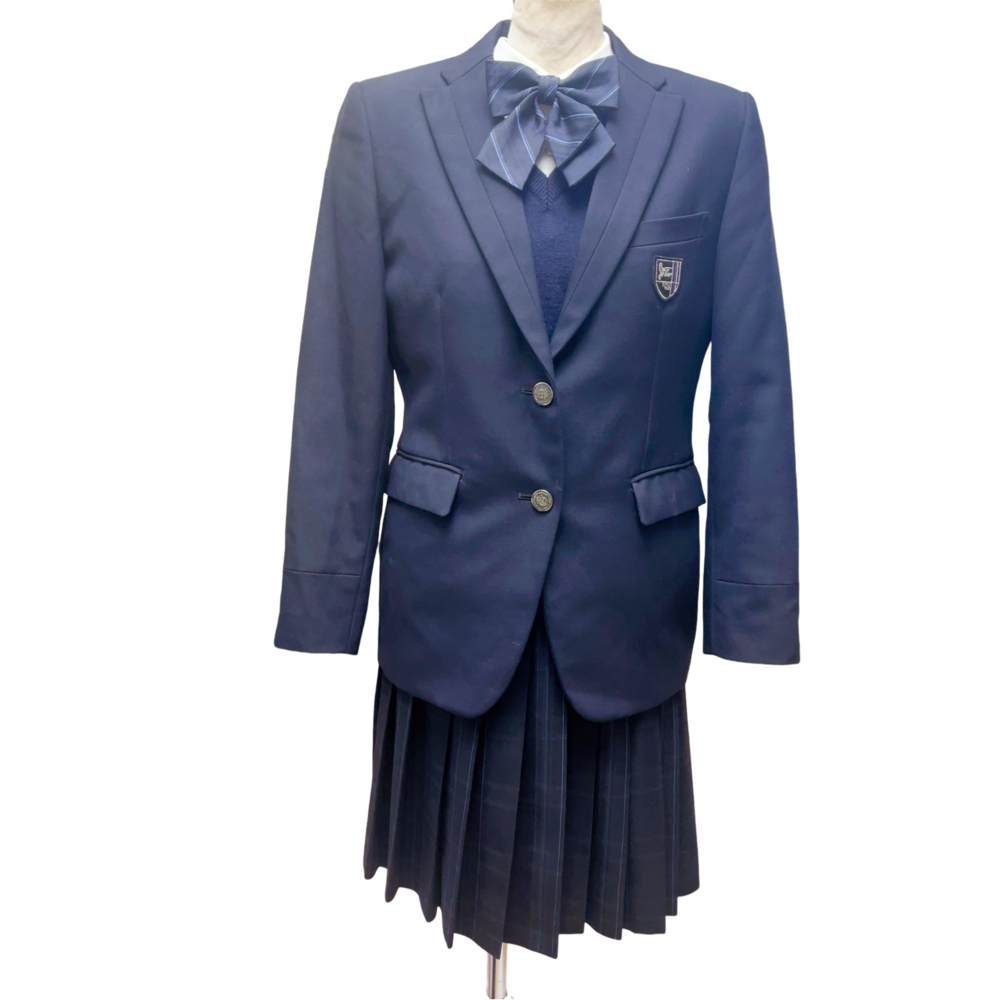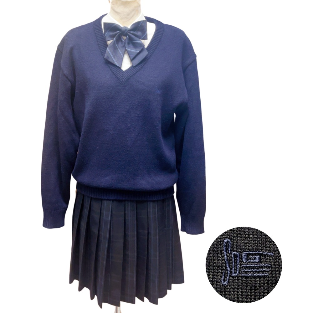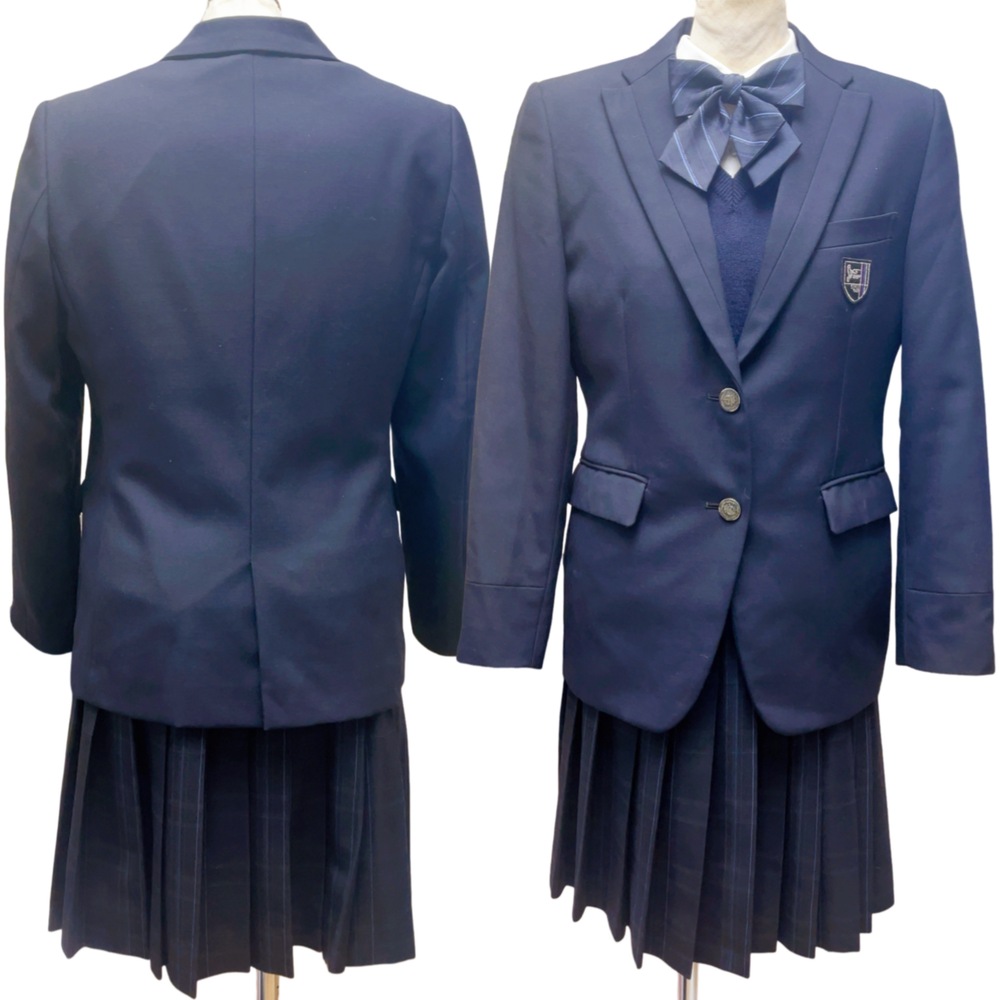 ご訪問頂き誠に有難う御座います。 ご入札前にお手数ですが必ず プロフィールをご一読下さいますよう 何卒お願いを申し上げます。 ご閲覧頂いていない場合のクレームは 受け付けておりませんので 何卒ご了承下さいませ。 以下発送品となります 上衣は、ブレザー・Vネックセーター・ベストの3パターンで着こなしが可能。季節や好みに応じて自由に組み合わせられ、同じ制服でも印象に変化をつけられます。 胸元には大きめのリボンがあしらわれ、やわらかさと華やかさを演出。スカートは細かなチェック柄のプリーツ仕様で、動きに合わせて美しく広がるシルエットになっています。