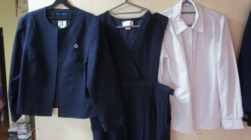 大阪(?)信愛女学院の冬制服一式になります。 ボレロ、ブラウス、ジャンパースカート、校章のセットになります。 大きいサイズになります。 しわ、汚れ、擦れ等があります。ノークレーム・ノーリターンでお願いします。 -----サイズ----- 冬服 ボレロ 65B 肩幅:43cm 袖丈:55cm 胸囲:51cm 着丈:57cm ブラウス LLサイズ 肩幅:42cm 袖丈:58cm 胸囲:49cm 着丈:62cm ジャンパースカート 23-60 ウエスト:47cm 着丈:104cm スカート丈:68cm 校章:学年章はありません。 |