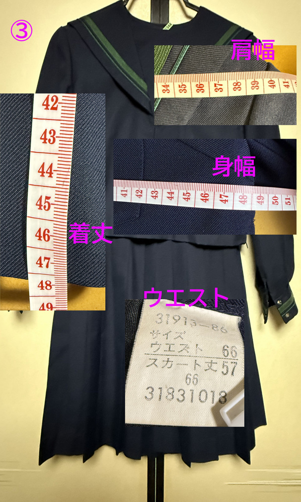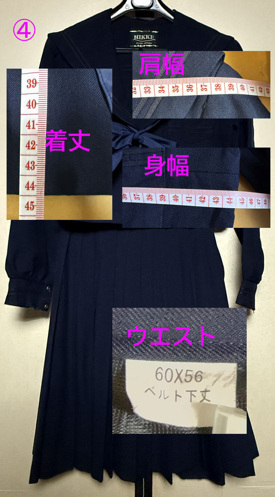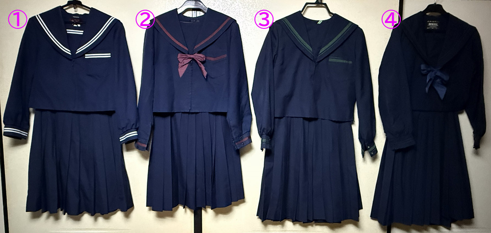 画像の冬セーラー服4校分 上下セットです。 上下同一校の物ではありません。 詳細は 画像をご覧ください。 キズ、ほつれ、汚れあります。 中古品での出品となりますので現状の状態でのお渡しとなります。 ノークレーム ノーリターンでお願いいたします。 発送はクロネコヤマトで発送いたします |